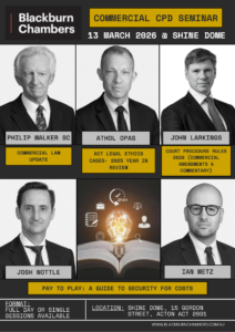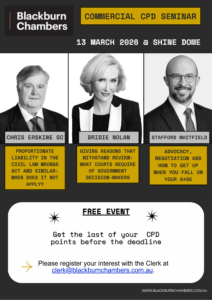 To register your interest and attendance please email the Clerk, Kobi Fogg, at clerk@blackburnchambers.com.au.